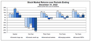 Although the recent quarter was positive, 2022 was a down year for stocks, reflecting emerging inflation, increasing economic uncertainty and rising interest rates. A globally diversified stock portfolio finished the year down 18% – a sharp and unsettling change from recent market trajectories.